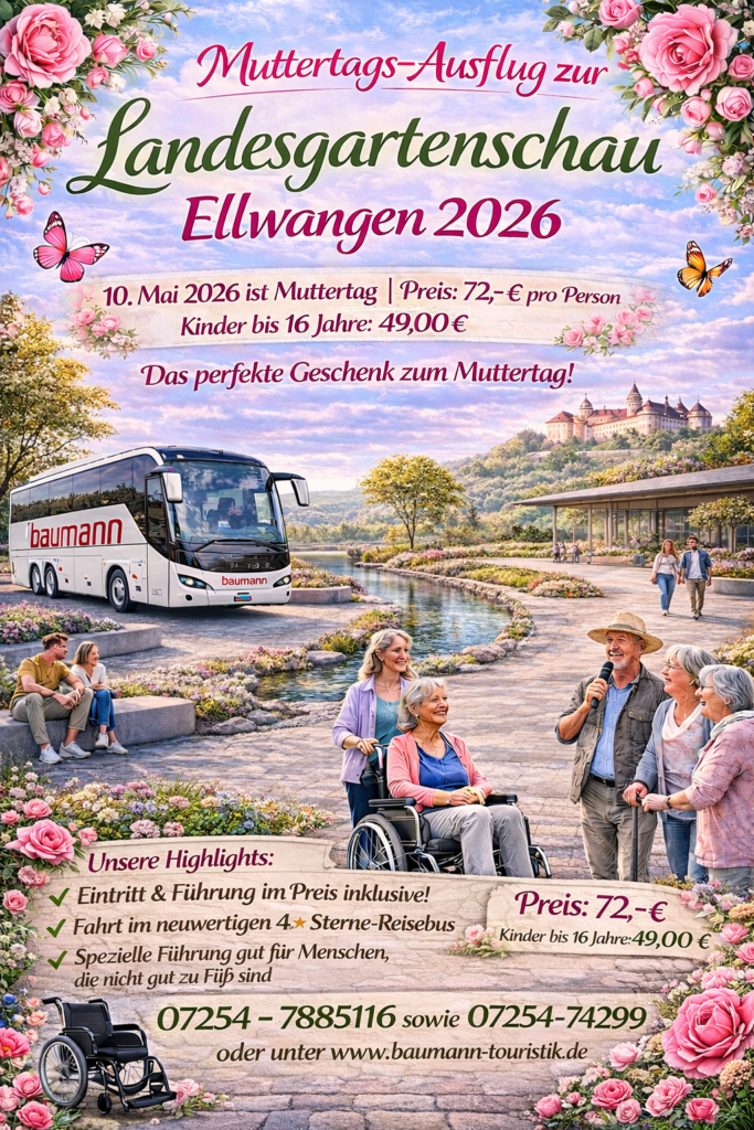 Muttertagsfahrt am 10.05.2026 zur Landesgartenschau nach Ellwangen a.d. Jagst – Natur, Kultur & Genuss